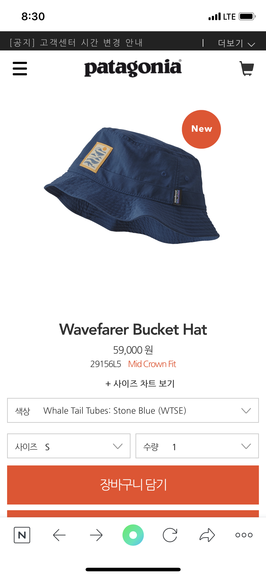 가격은 59,000원 , 파타고니아 회원 할인 5% 적용해서 구매했다.