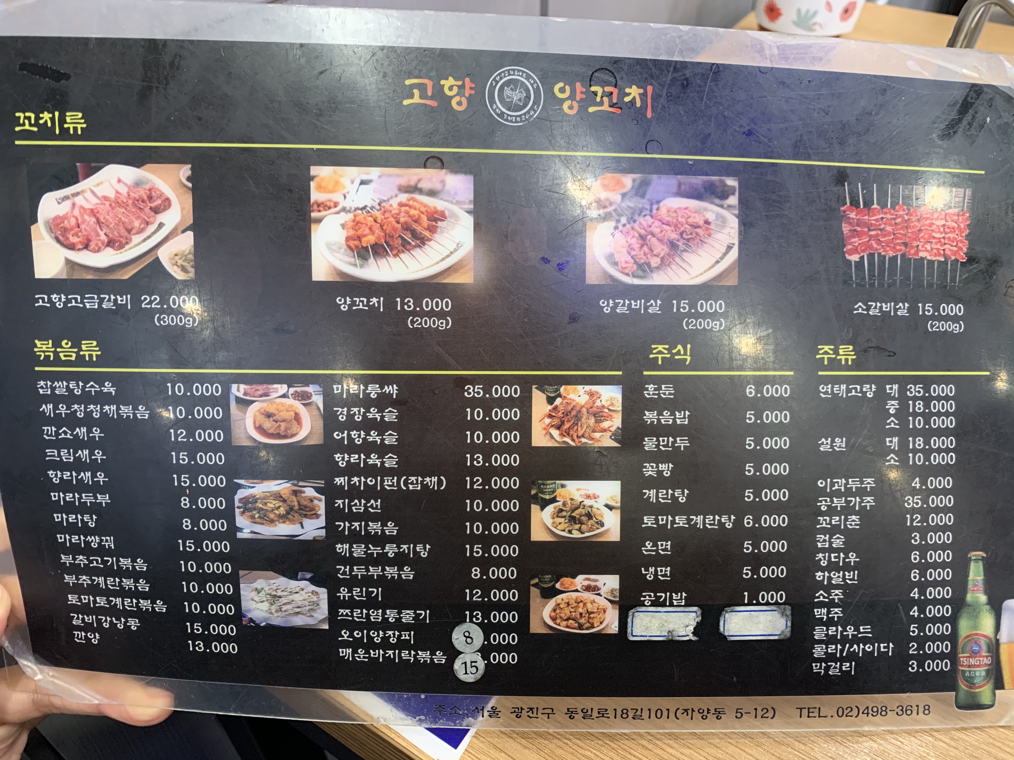 우선 우리는 양꼬치 2인분(기본1, 양념1) 과 크림새우를 주문했다!