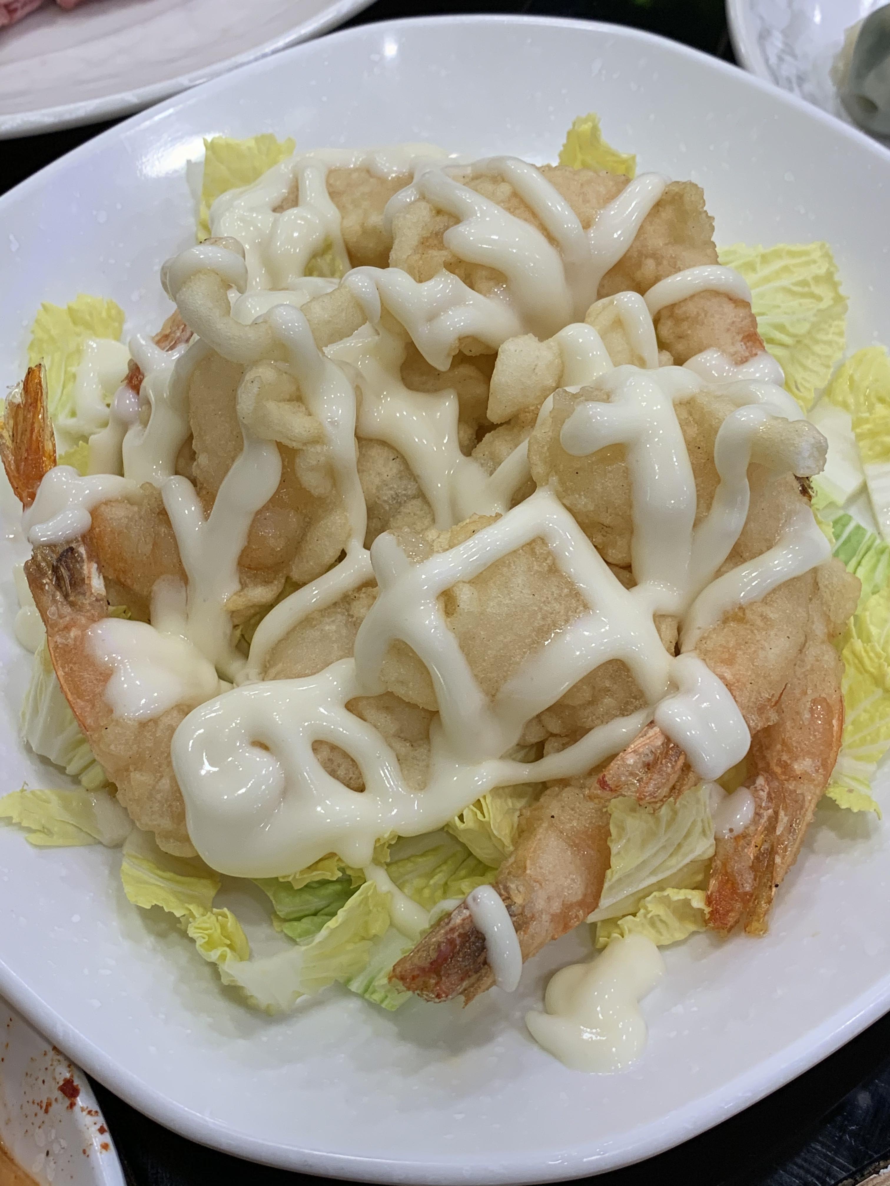 크림새우 한입 먹고 밑에 깔린 배추를 소스에 푹 찍어 먹으니 짱 맛있었다 ㅠㅠ