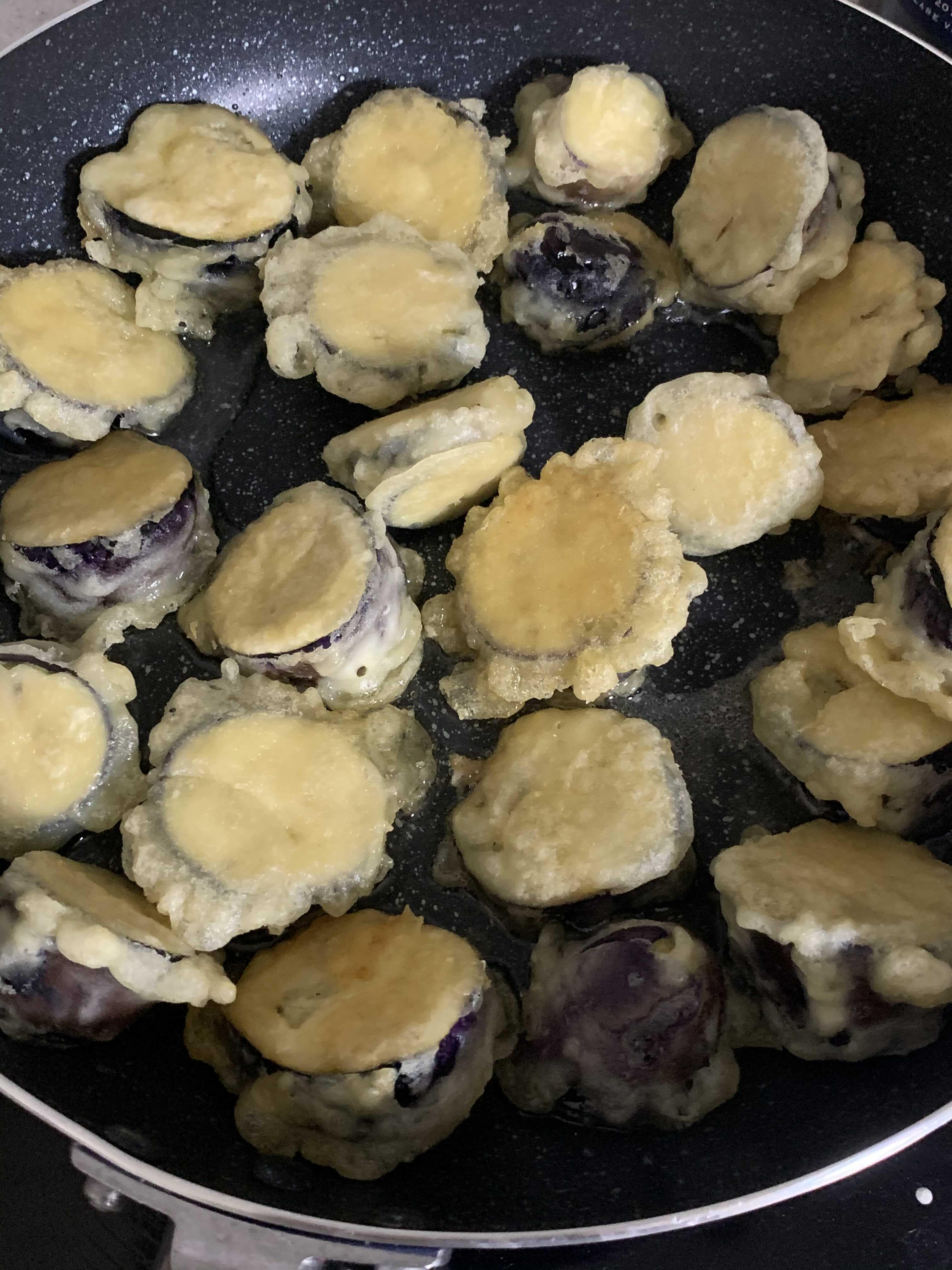 기름 넉넉히 두르고 가지를 튀겨준다.
