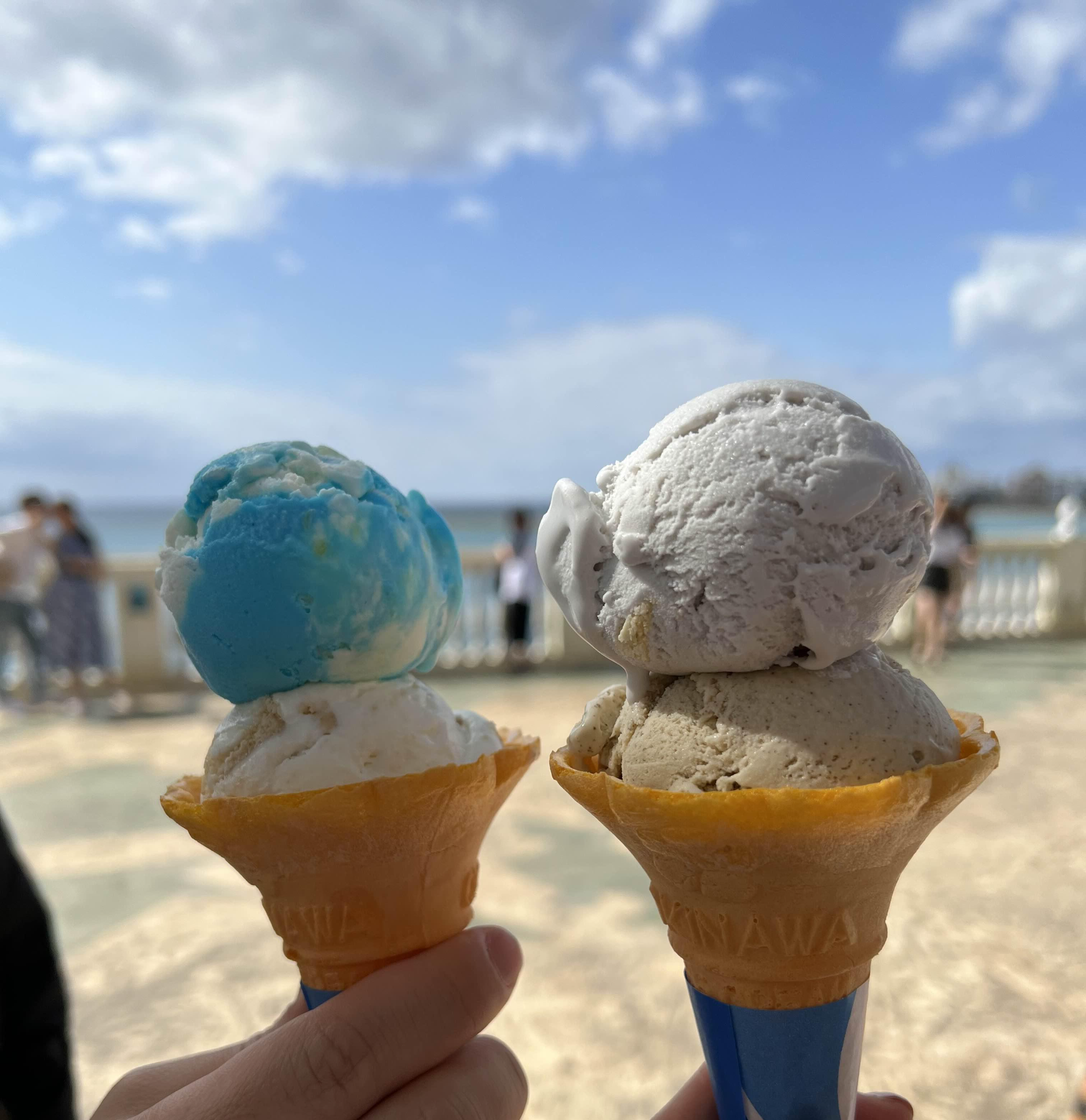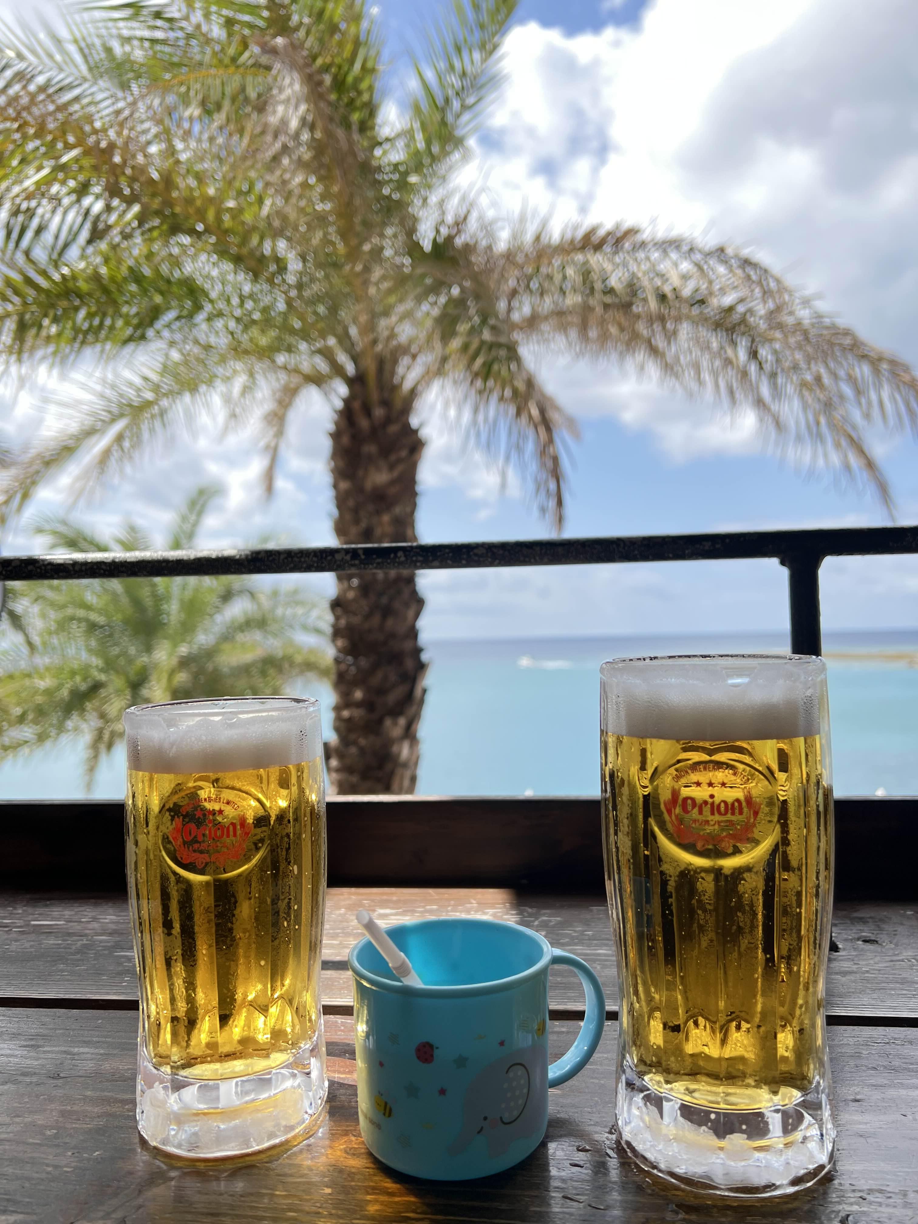 마지막 일정은 코우리 비치인데 별로 볼 거도 없고 사람 많아서 그냥 식당 쪽에서 애기 이유식 먹이고 파인애플 아이스크림 하나씩 사 먹었다. 파인애플 아이스크림도 맛없어서 놀람.