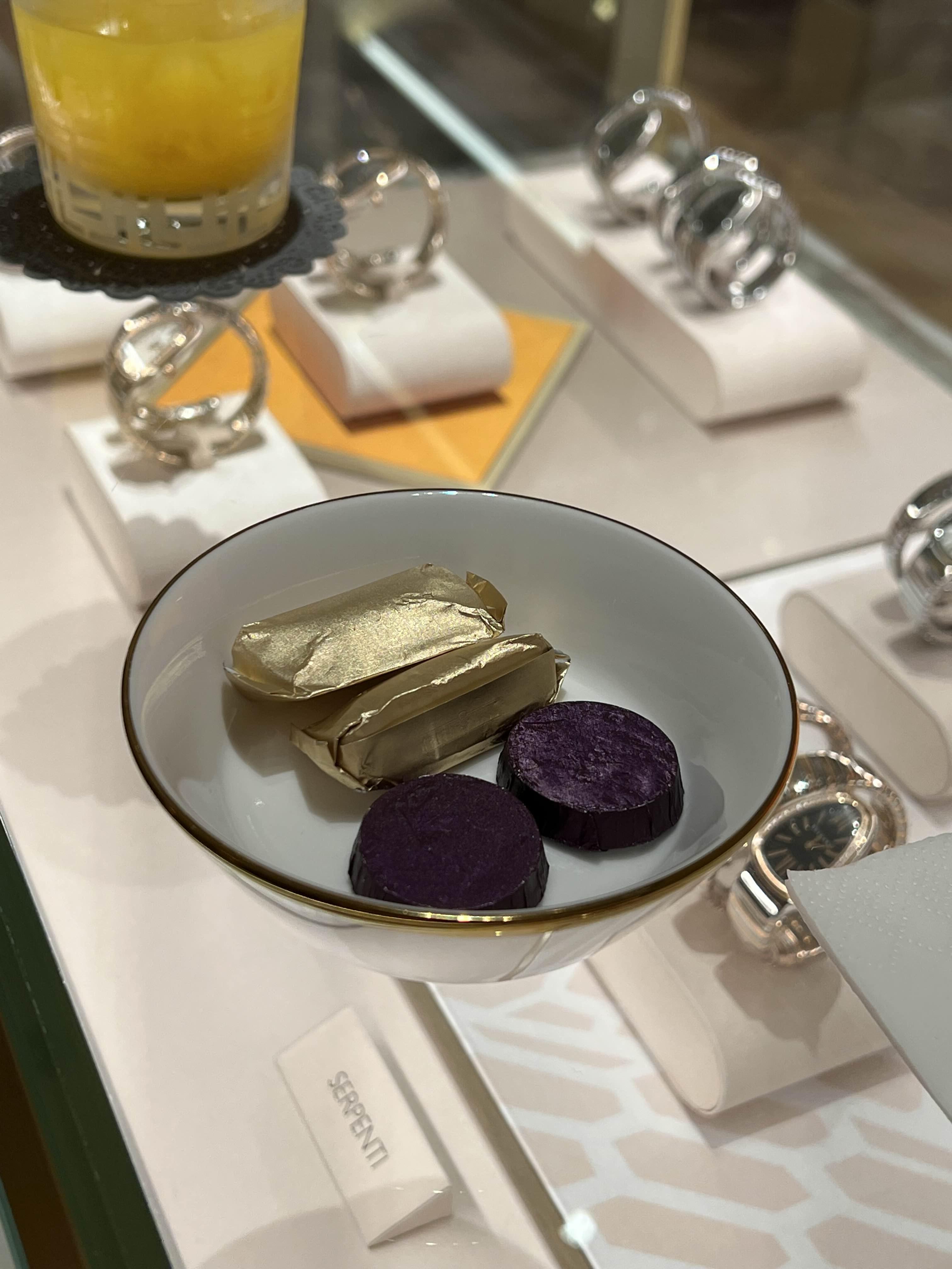 구매하고 결제 기다리면서 준비해 주신 다크 밀크 초콜릿과 오렌지 주스